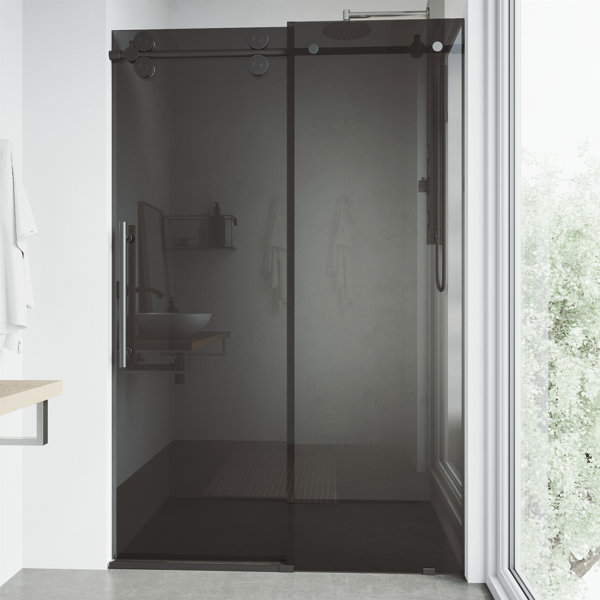 Semi-Frameless Sliding Shower Door in Oil Rubbed Bronze with White Shower Base. Genius Iron 66FT Single Barn Door Hardware Classic Design Standard Track with Upgraded Nylon Bearings for 36in-40in Wide Sliding Door Panel Easy Installation Basic J. First it uses 12 glass the heaviest glass available for shower doors instead of 38 glass.